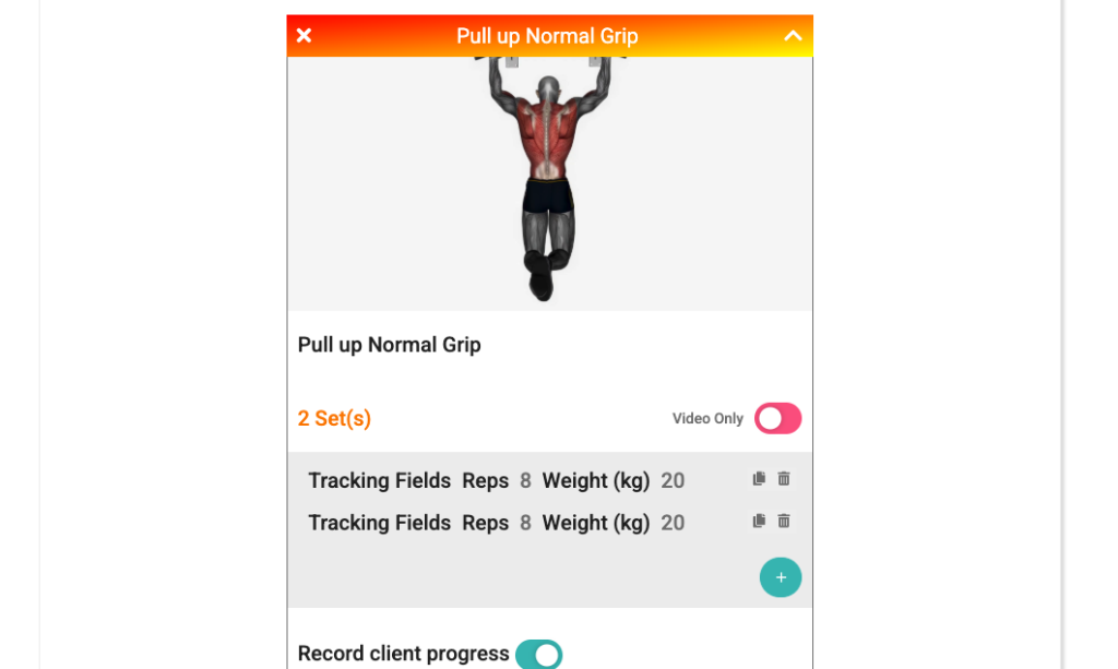 If you want your client to record their progress, switch the toggle on (it will turn green).